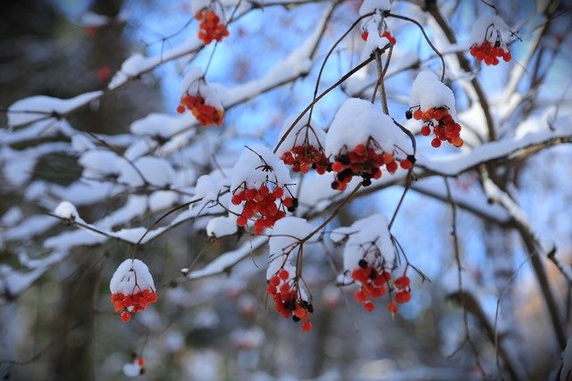 ナナカマドの実でしょうか。頭上の小さな彩りも印象的でした。