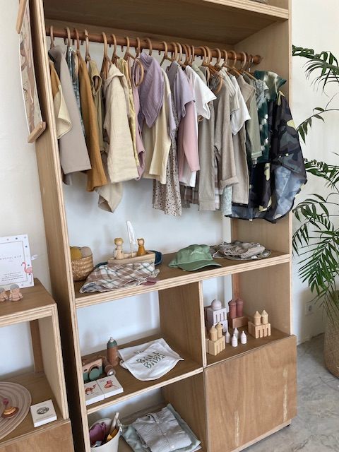 奥は広々としている為、小さなお子様と一緒にお買い物したい子育て中ママは、お洋服をゆっくり選べますね。ベイビー&キッズアパレルも販売しています。