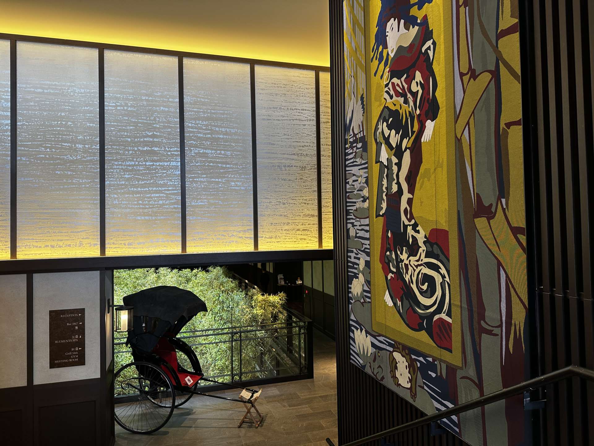 竹林を眺めながらブッフェが楽しめるレストランです。現代的なすっきりとしたお洒落なデザインと、京町家を彷彿させる歴史的な特徴が融合している空間です。竹林は本物の竹、木、土など、自然の素材が使われ、通風や採光の工夫も凝らされ、まさに、京町家のお友達の家に遊びに行った気分です。一日の移ろいも吹き抜けを通して感じる事ができます。