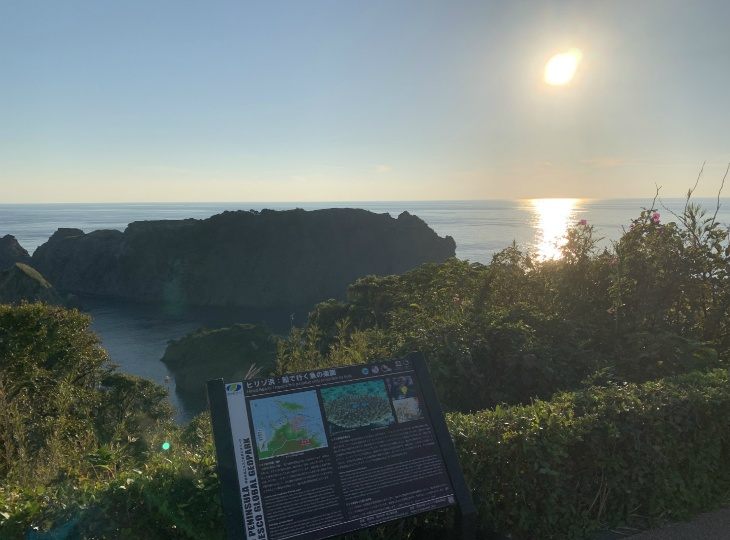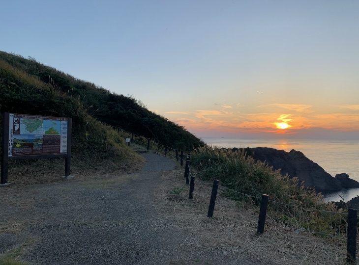 写真は夕暮れ時の「奥石廊崎あいあい岬」。