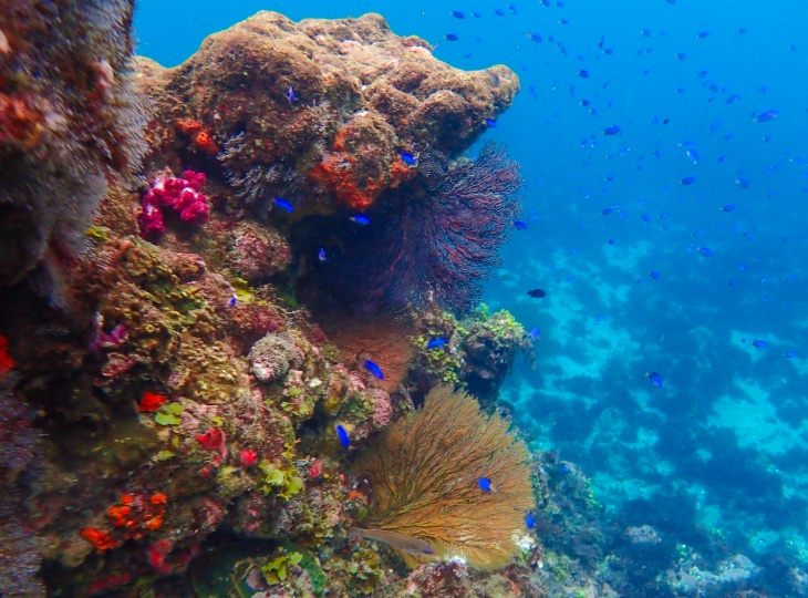 サンゴやクマノミ、色鮮やかな魚たちが優雅に泳いでいます。