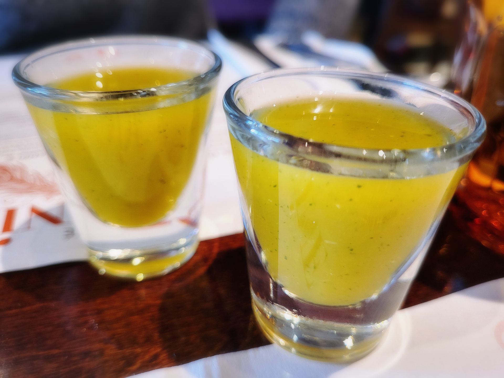 席に案内されると、お水とウエルカム・ドリンクのミモザ(モクテル)をもってきてくれます。