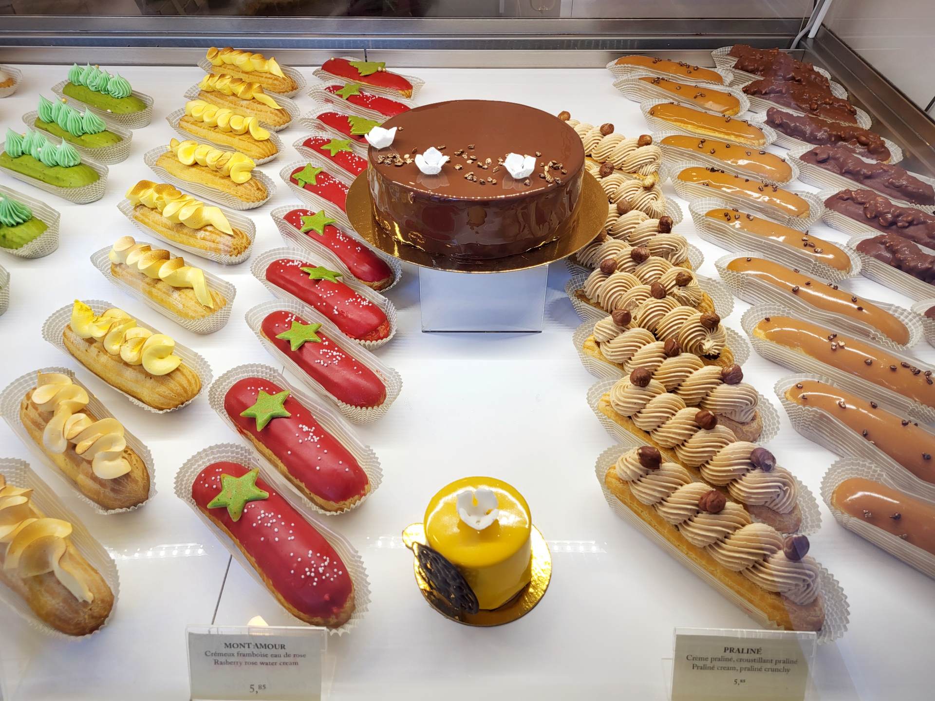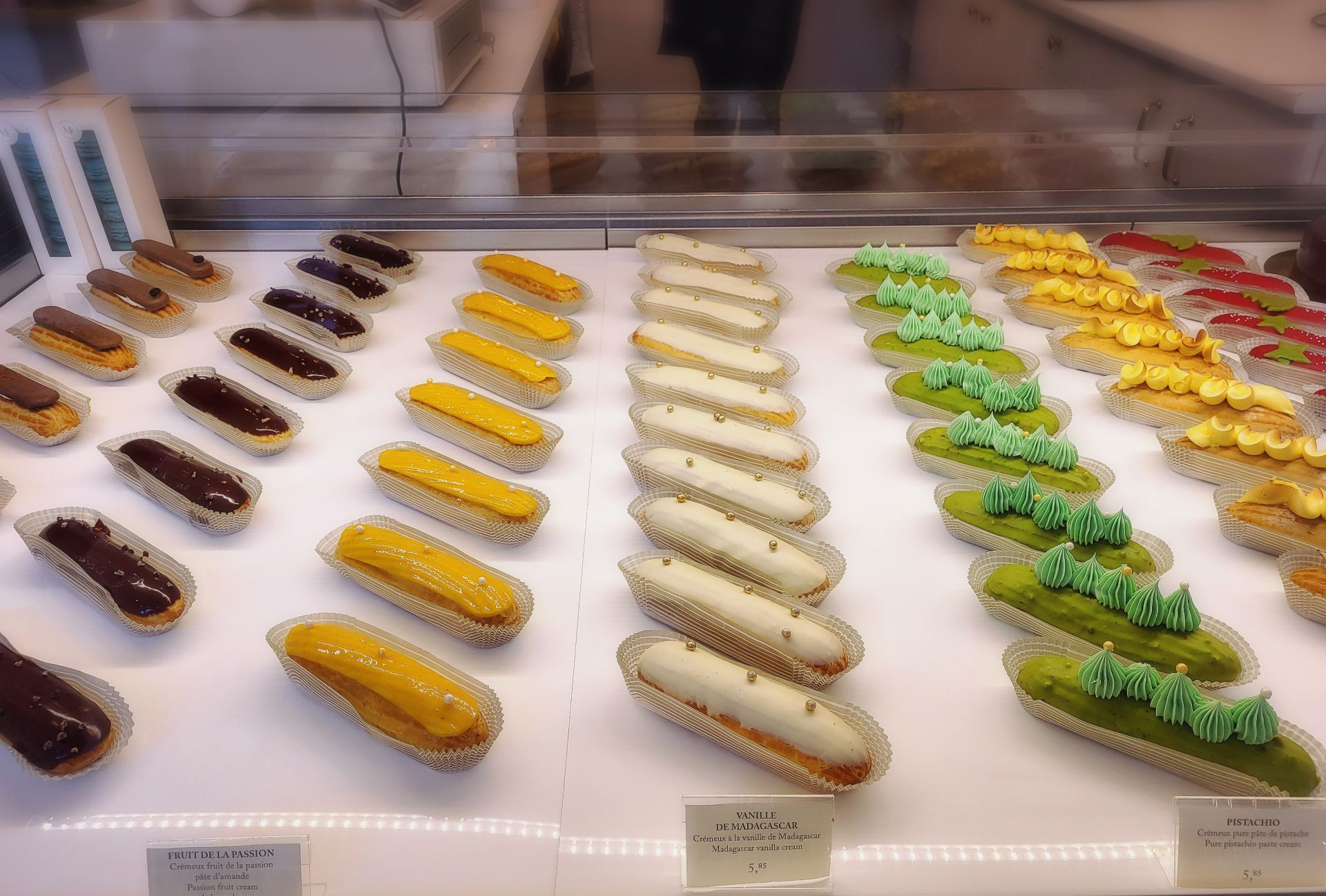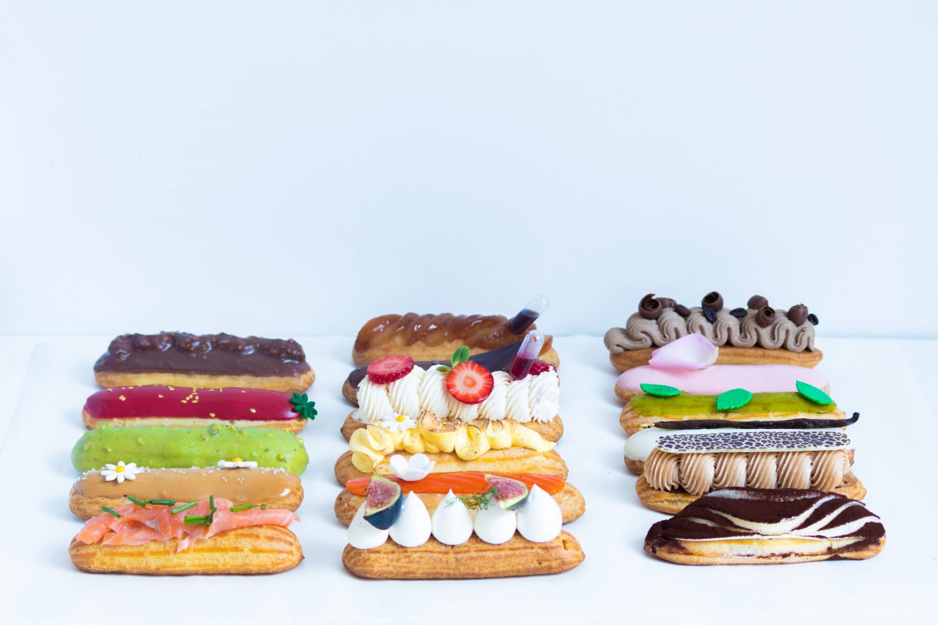 チョコレート・バニラ・塩キャラメル・プラリネなどの定番メニューに加え、季節の果物をつかったエクレアを常にそろえているそうです。
