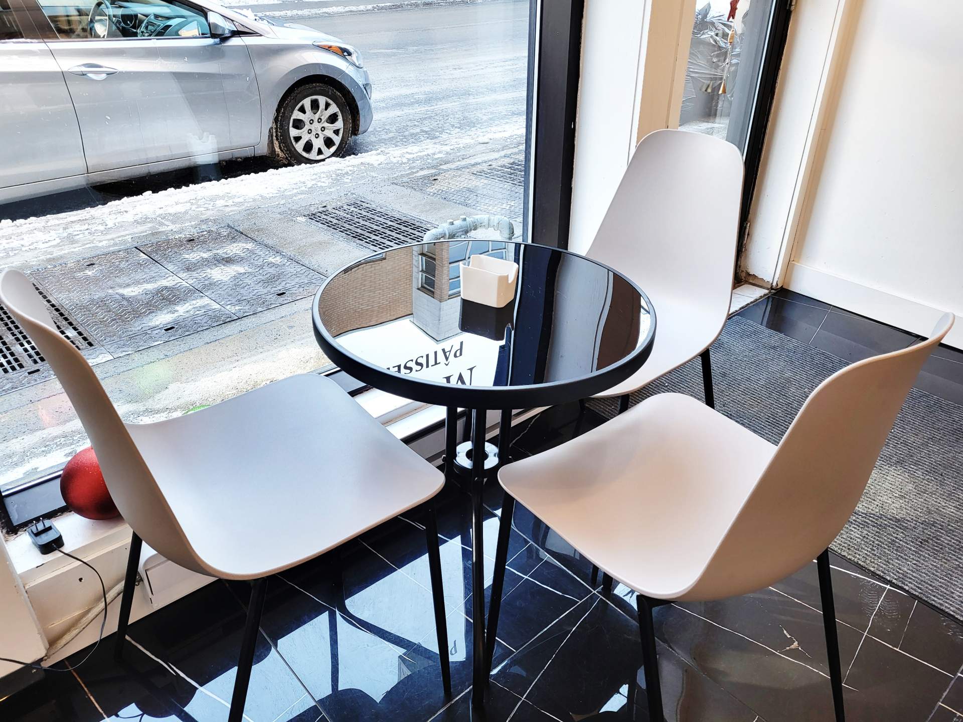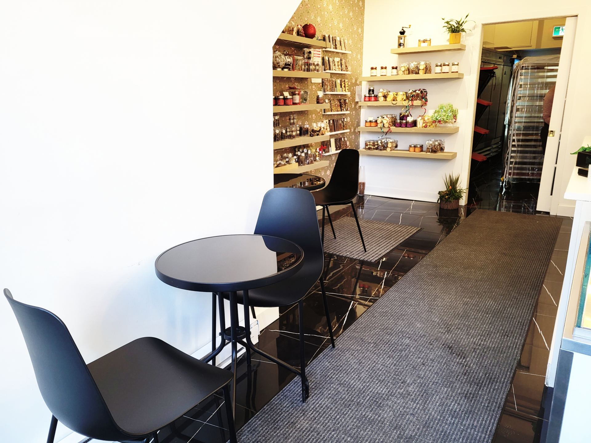 店内には小さいながらもイートインスペースがあるので、コーヒーやハーブティーなどと一緒に購入したエクレアをその場で食べることもできます。