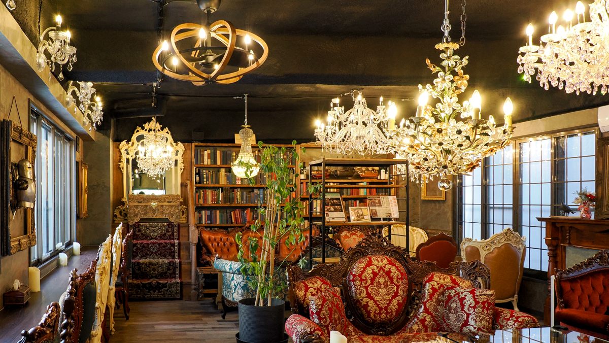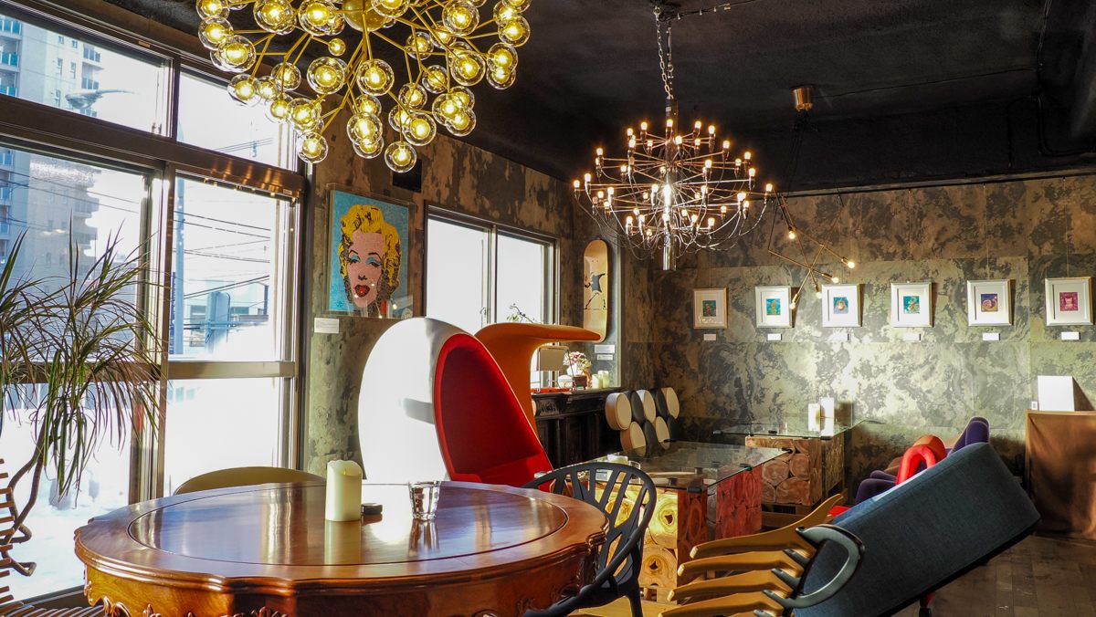 イスやテーブル、照明やインスタレーションと、どこを見ても目を引くものにあふれ、アートギャラリーに迷い込んだかのようです。