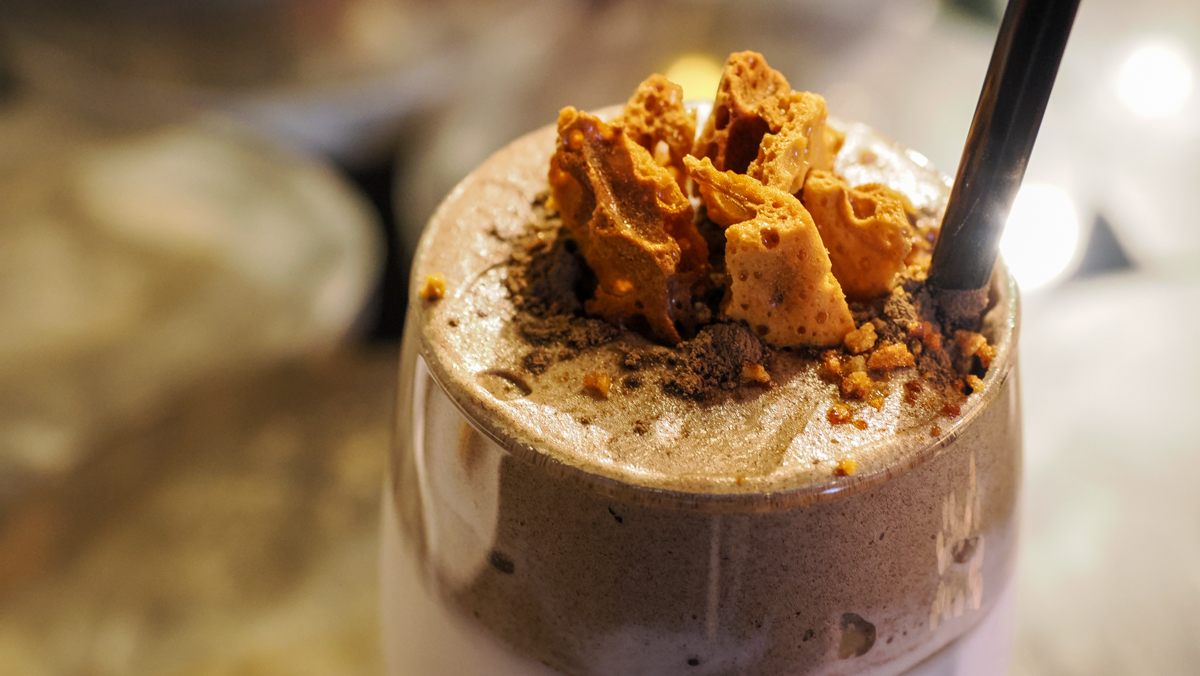 写真↑は、4種類あるダルゴナドリンクのひとつ「ダルゴナほうじ茶」(780円)。