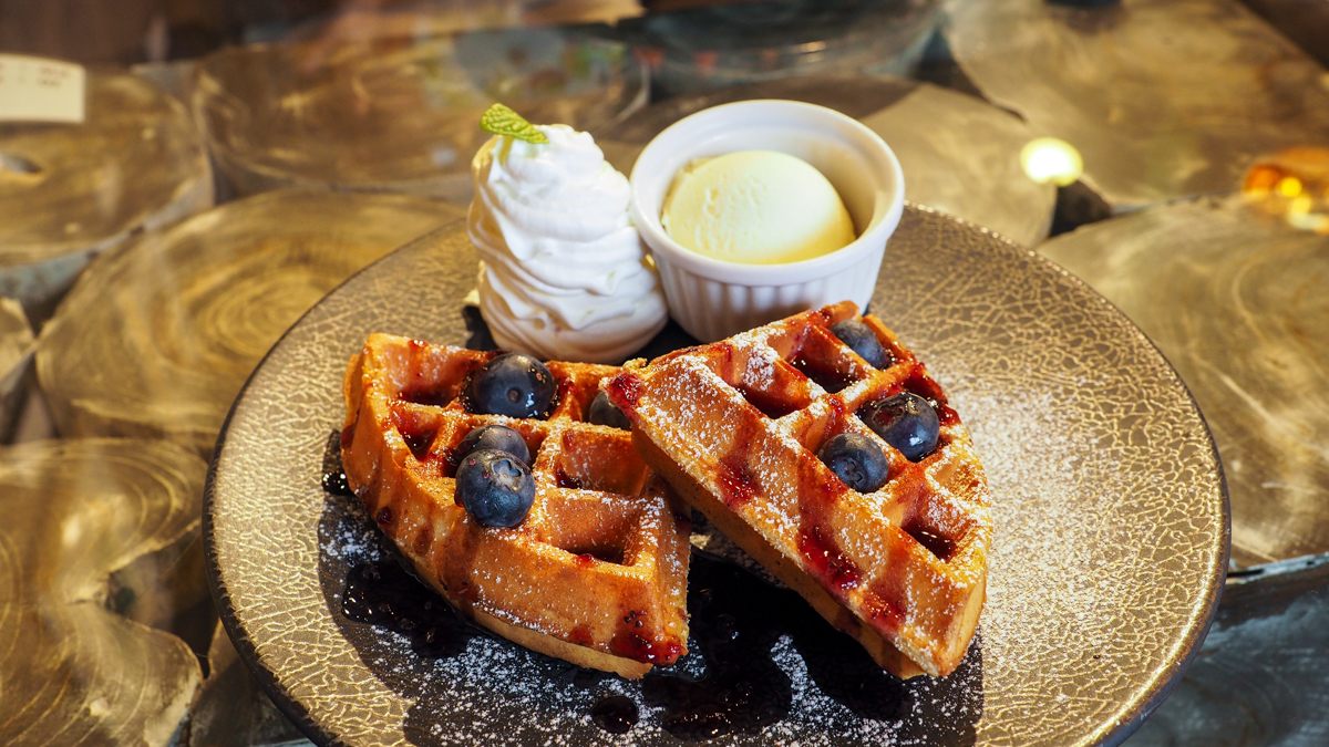 注文してから焼いている焼き立てワッフルは、ふんわりサクサク生地。