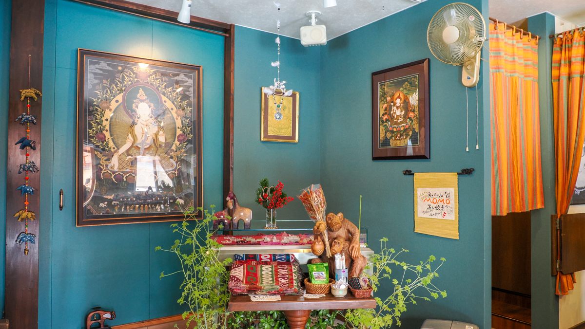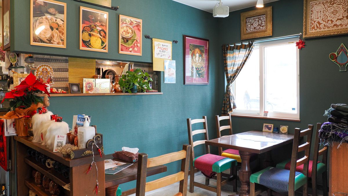 店内は、落ち着いたグリーンの壁紙にネパールを思わせるような装飾があちこちにあり、ネパールのお茶や商品などが陳列されています。