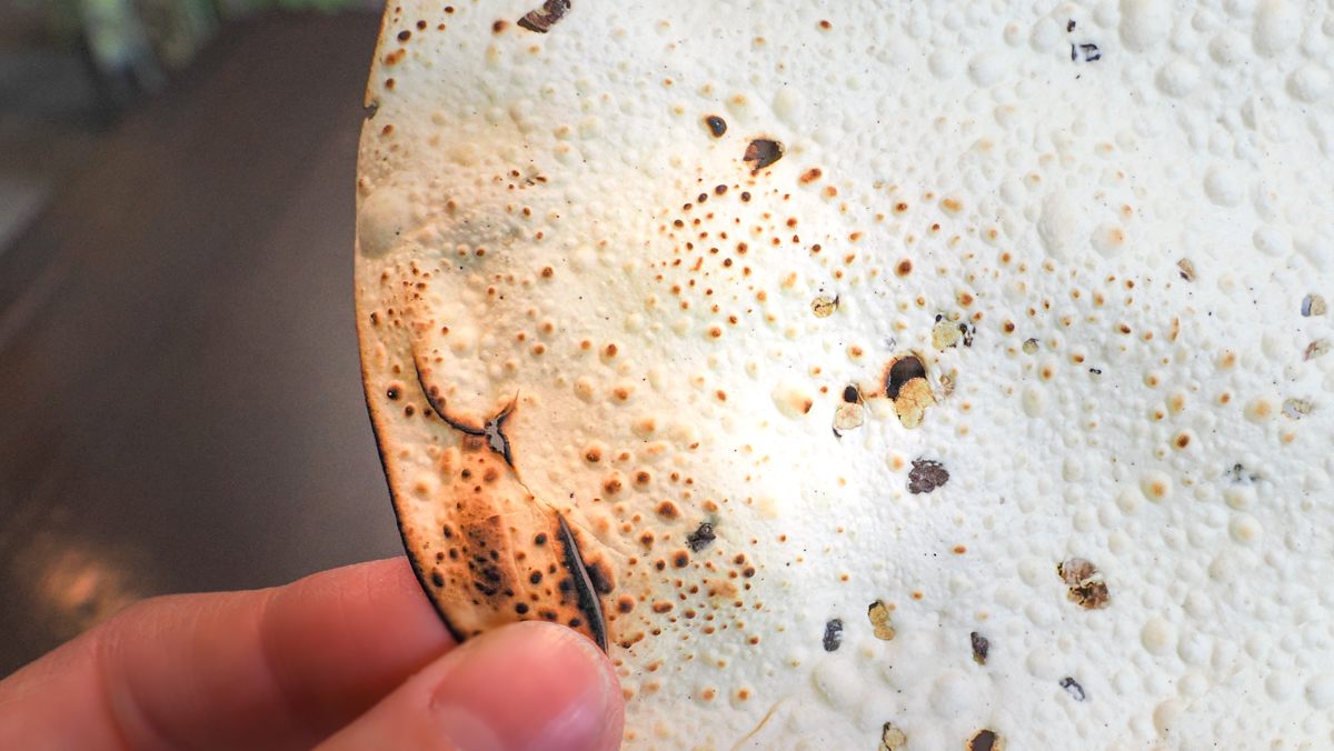 ビールを注文すると、おつまみの「パパド」がついてきました。