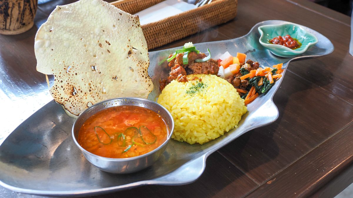 ですが、ちなみに、プレート上のおかずやご飯は、別々に食べてももちろんOKですが、実はすべてを混ぜていただくのが本場ネパール風です。