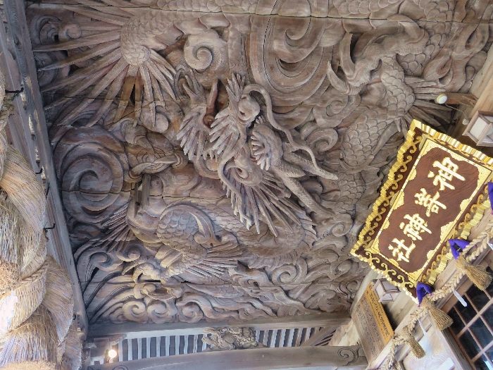「神崎神社」は、迫力ある龍の彫刻をはじめ浦島太郎、乙姫、竜宮城など物語性のある素晴らしい彫刻の数々を目にすることができるので、建築というより工芸というか芸術を鑑賞する感じで時間を忘れてしまいます。