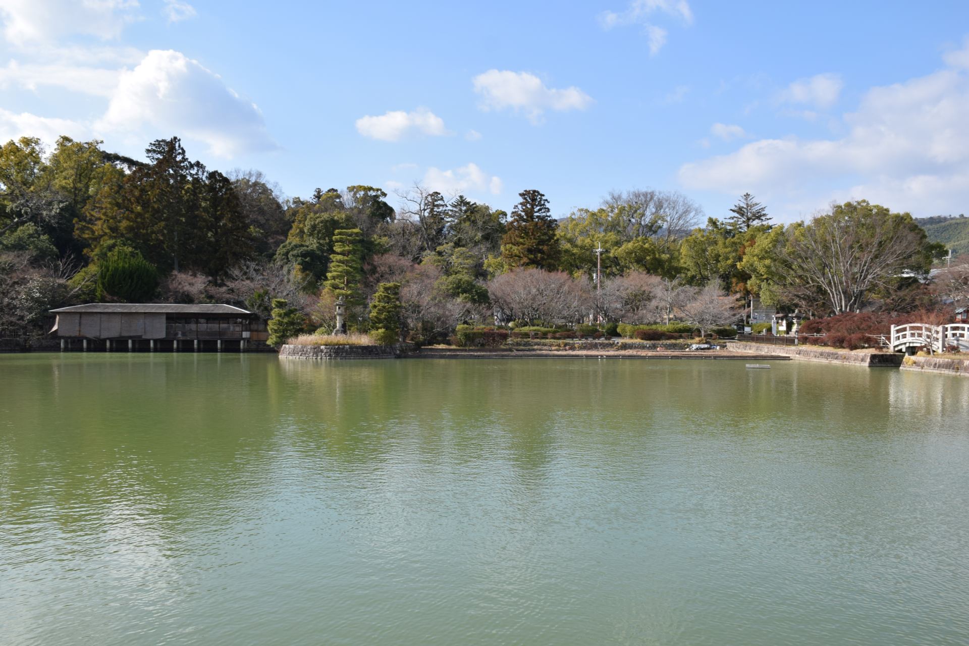 2月には梅、4月には八条が池を囲むキリシマツツジという真っ赤なツツジが大変美しいところです。