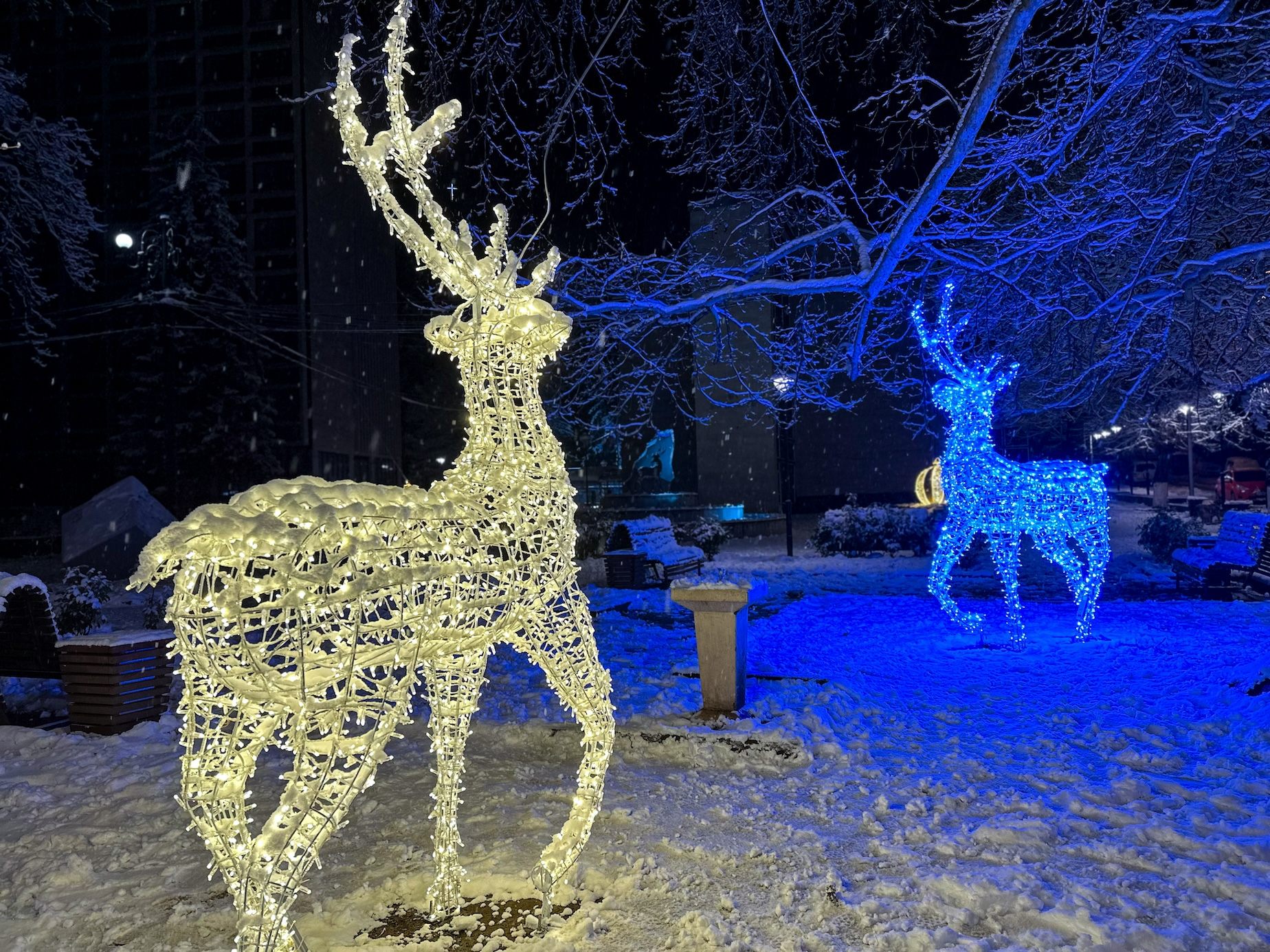 ボルジョミは町章やボルジョミウォーターにも描かれている通り、鹿がシンボルの町でもあるので、町の中心にあるTBC銀行横の広場には、鹿のイルミネーションも登場しました!