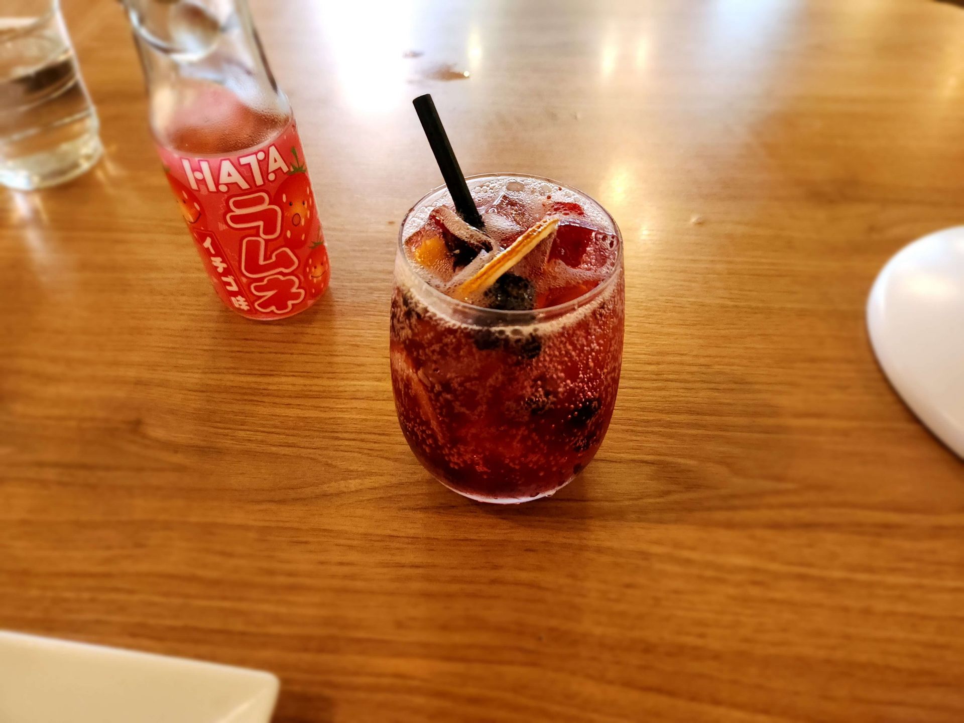 飲み物にサングリアの赤と白もあったので、思わず赤を頼んでみました。(もちろんアルコール入ってます)一緒に行ったオーストラリア人はラムネ。ビー玉の栓をポンっと開けるの、懐かしいですね。
