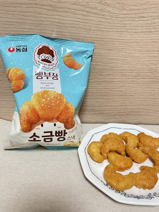 パン部長シリーズ 塩パン味は新商品で2023年10月に発売されました。韓国は最近塩パンブームなので、流行りそうですね。コーンスナックなので、どこかで食べたことのある懐かしい味。塩はそんなに感じず、バターの味がしっかりしておいしかったです。コーヒーと合いそうです。