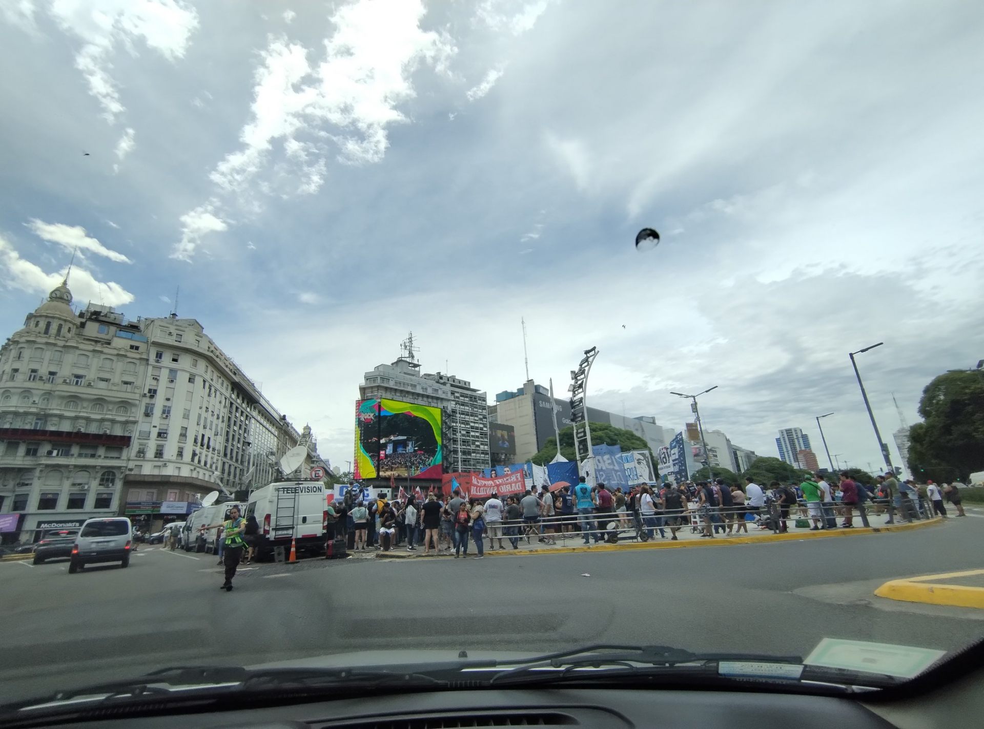 こちらは2023年12月22日のデモの様子です。こちらはオベリスコの周りの共和国広場ですが、従来のブエノスアイレス中心部のデモ活動におけるデモ隊を広場の片側に寄せて、交通は遮断するようにはさせていません。