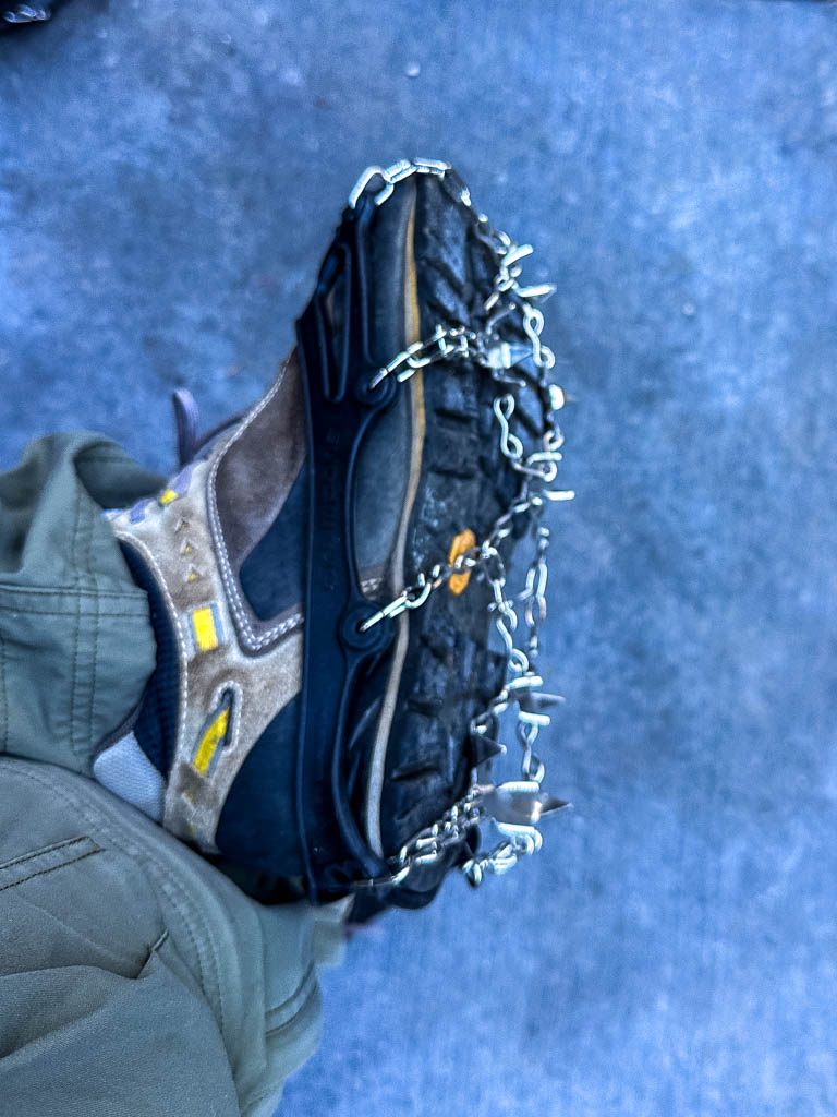 雪に覆われた遊歩道、とりわけ凍結した時は靴に被せる簡易スパイクが大活躍です。