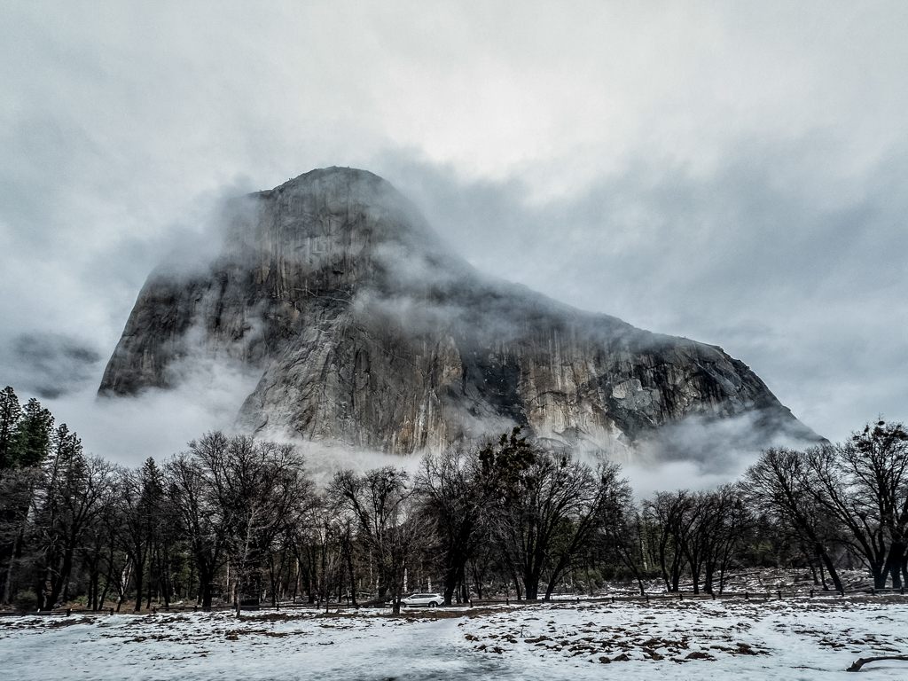 El Capitanの1000mの岸壁には雲がかかっていました。
