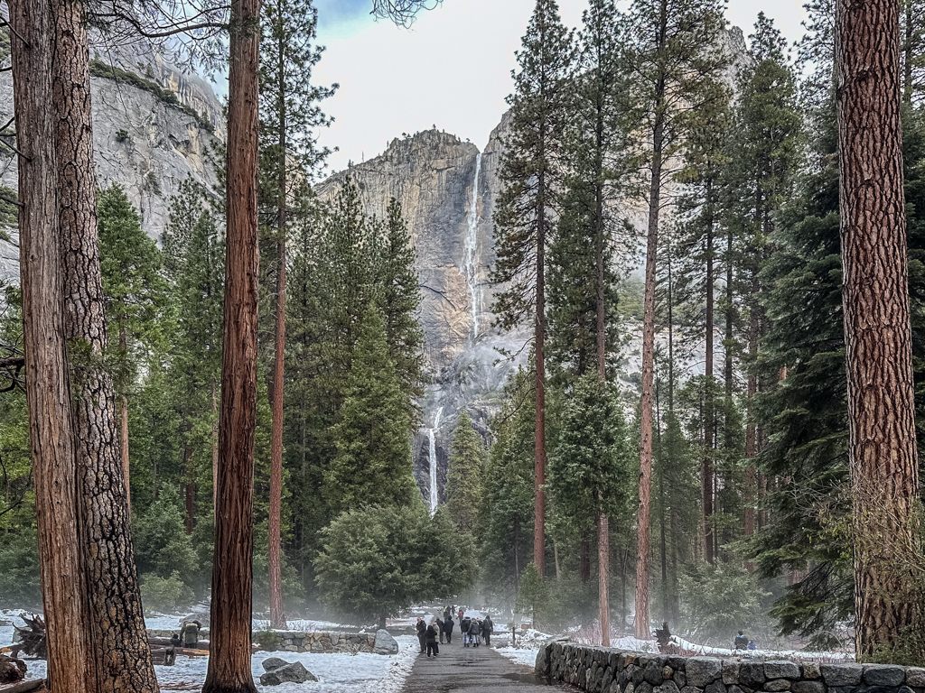 ヨセミテ滝の水もだいぶ戻ってきています。遊歩道はよく除雪されていました。
