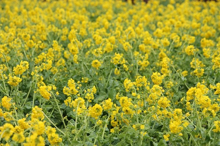 カンザキハナナ(寒咲花菜)という名の早咲き菜の花が、面積約4,000㎡に約12,000本咲いています。