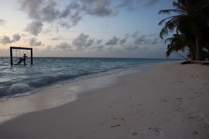 インフィニティプールそばのビーチにはかわいらしいブランコが。1人乗り用のブランコもありました。