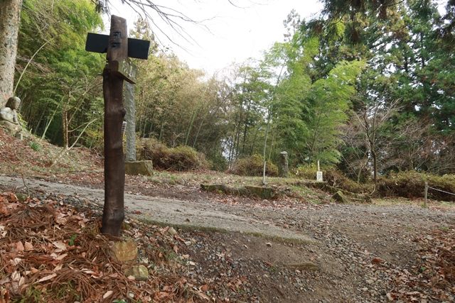 (登山道入口)六地蔵と聖観音像が祀られています。なお、途中にも石仏がみられます。