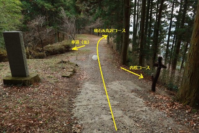 硯石登山口へと出ました。車道を10分ほど歩いて内松登山口へと戻ります。