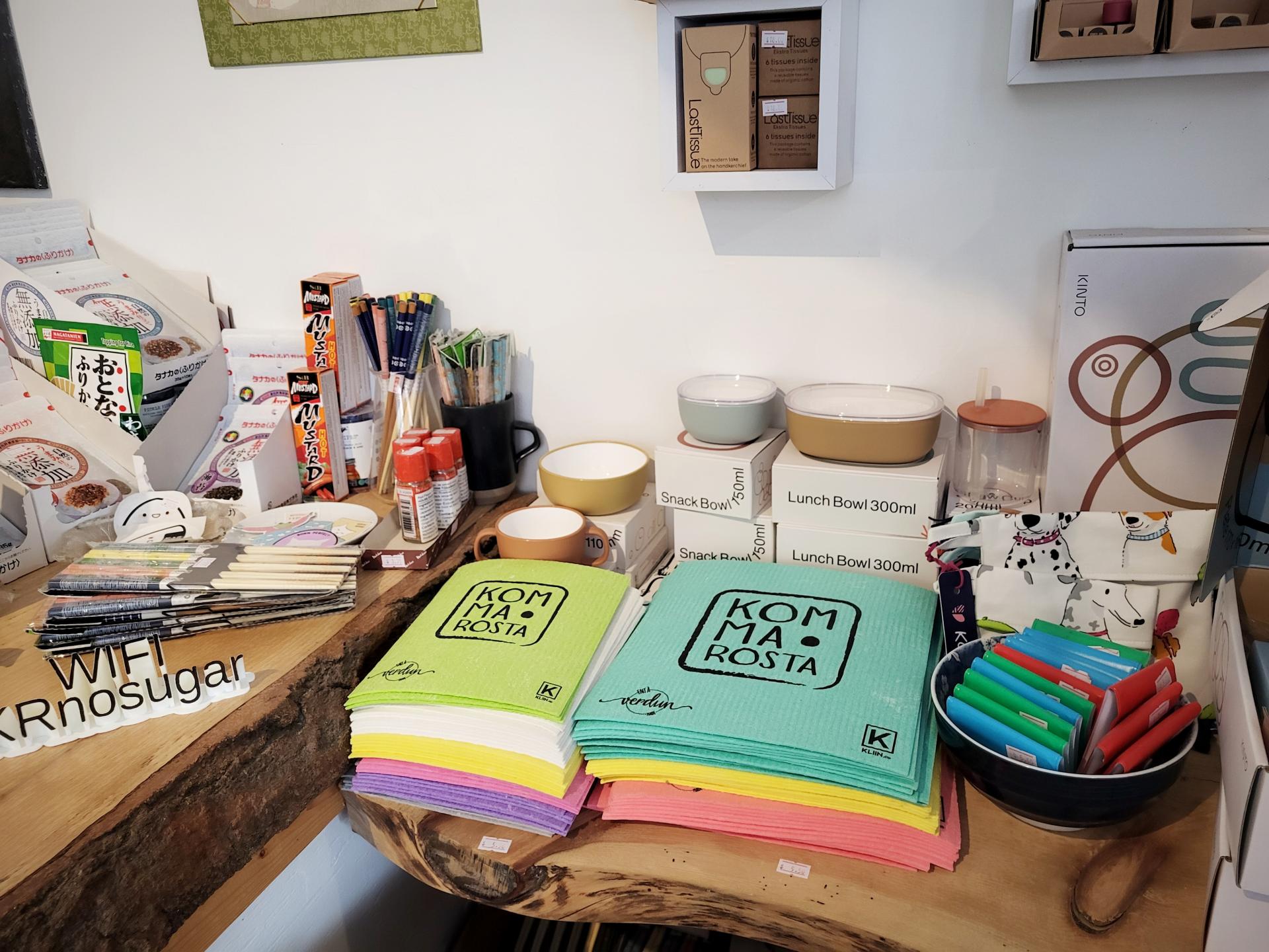 お店に入った感じは「和」という感じはしませんが、レジには日本のちょこっとした小物や食品がおかれています。