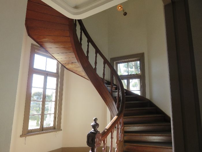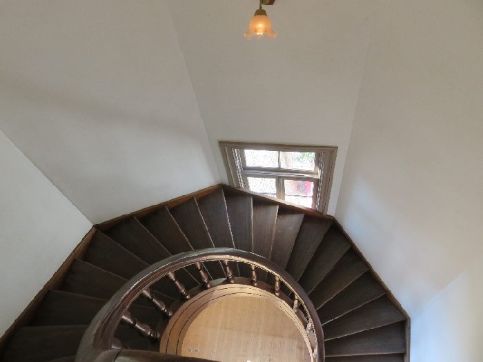 建物内には、明治期の洋風建築で国内唯一と言われている「支柱が存在しないらせん階段」が当時のまま残されています。な、なんと、この曲線美が素晴らしいらせん階段、当時使用人専用の階段として使われたそうです。