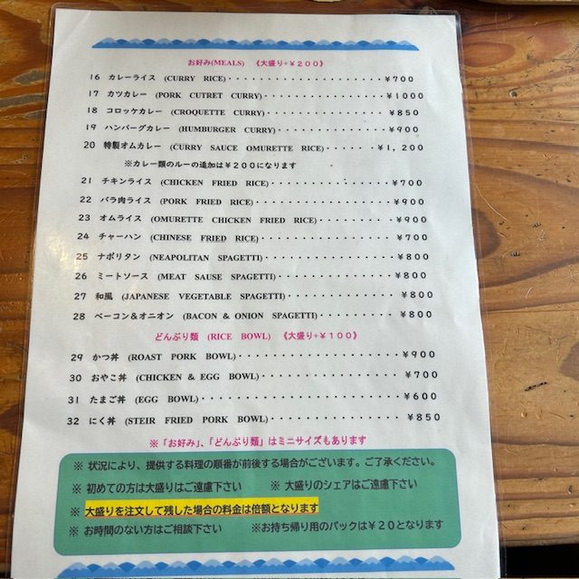 初めての方は大盛り禁止、大盛りのシェアもダメ、残した場合の料金は倍額だそうな。