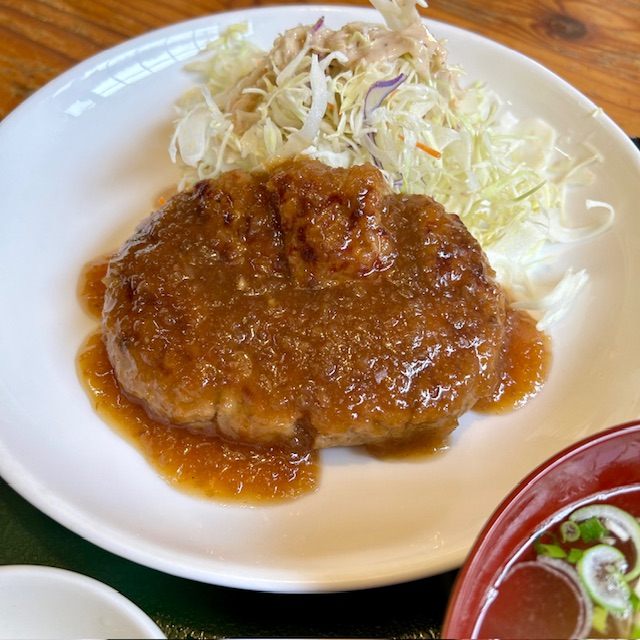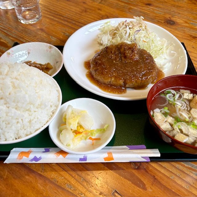 ハンバーグ定食 ごはんは山盛りでボリューム満点