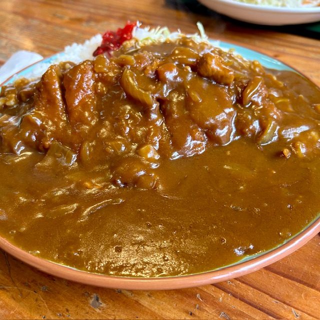 カツカレー これもすごいですぅ〜。大きいカツが見えないほどカレーがかかっていて、とてもひとりでは無理です。