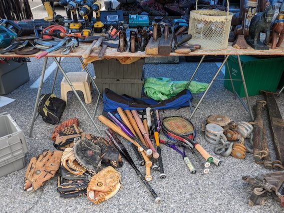 お好きな方々にはたまらないであろう、使い込んであるスポーツ用具や楽器の出店も見受けられます。