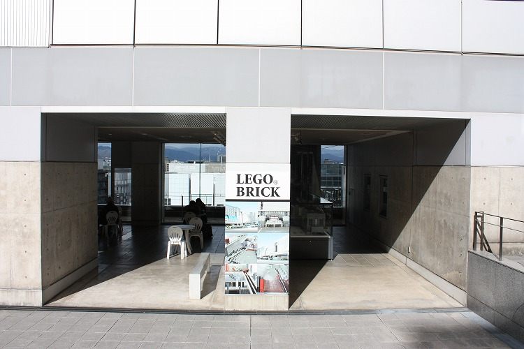 京都駅ビルの東広場では、「レゴブロックによる京都駅ビル100分の1モデル」が展示されています。