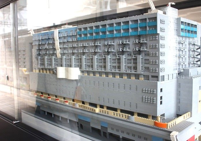 レゴブロックでできた精巧な京都駅ビルは、細部までとても細やかに作られています。