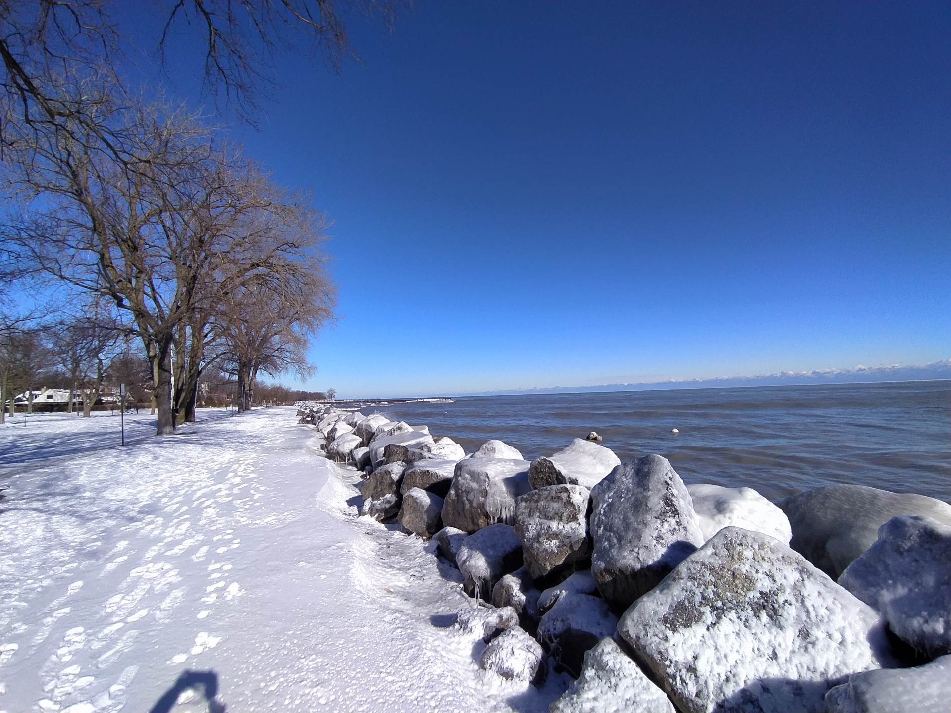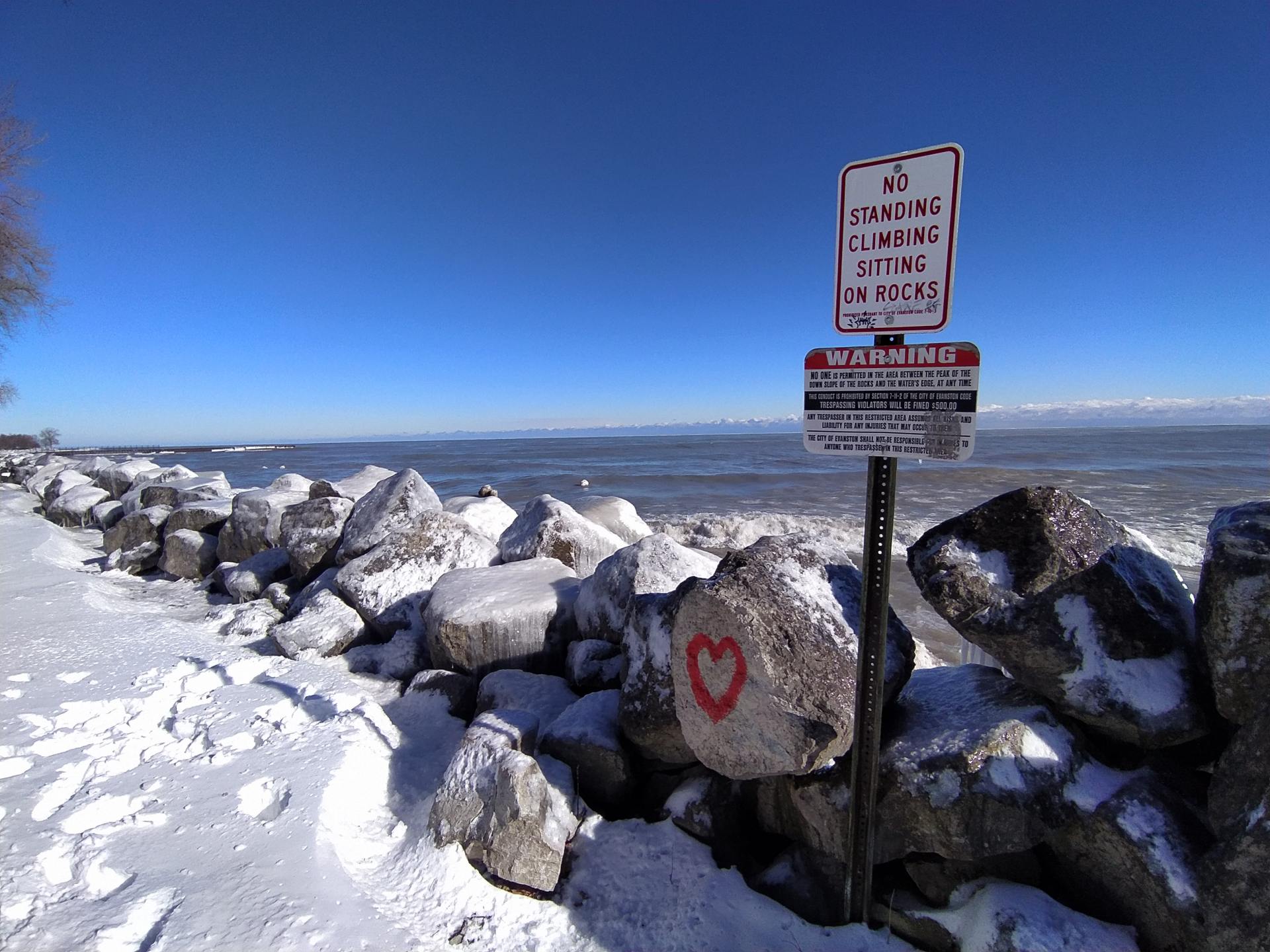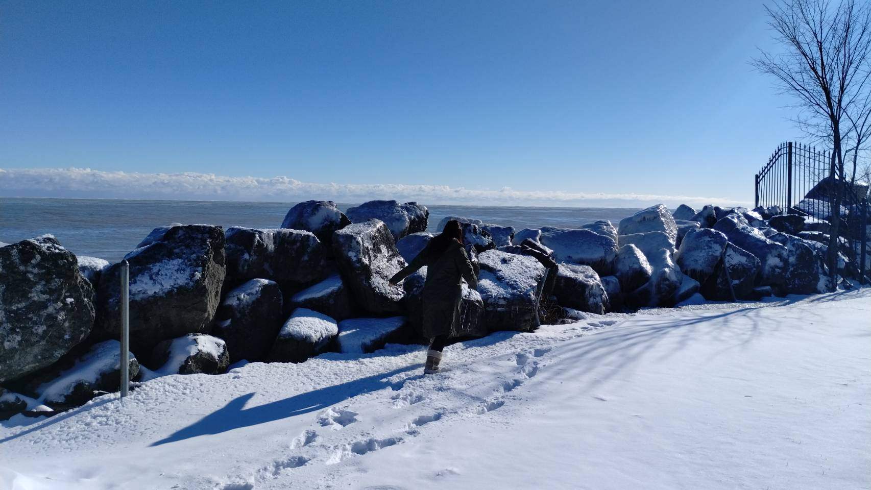 また同時期、この時期にしかできないミシガン湖のパンケーキアイスを見に行ってきました。このパンケーキアイスは、ミシガン湖が凍ったときにできる丸い氷がパンケーキに似ていることからそう呼ばれるようになったそうです。今回はそれを観に行ったのですが、氷はすでに溶けでなくなっていました。残念でしたが、凍った岩など、美しい景色を見ることができました。