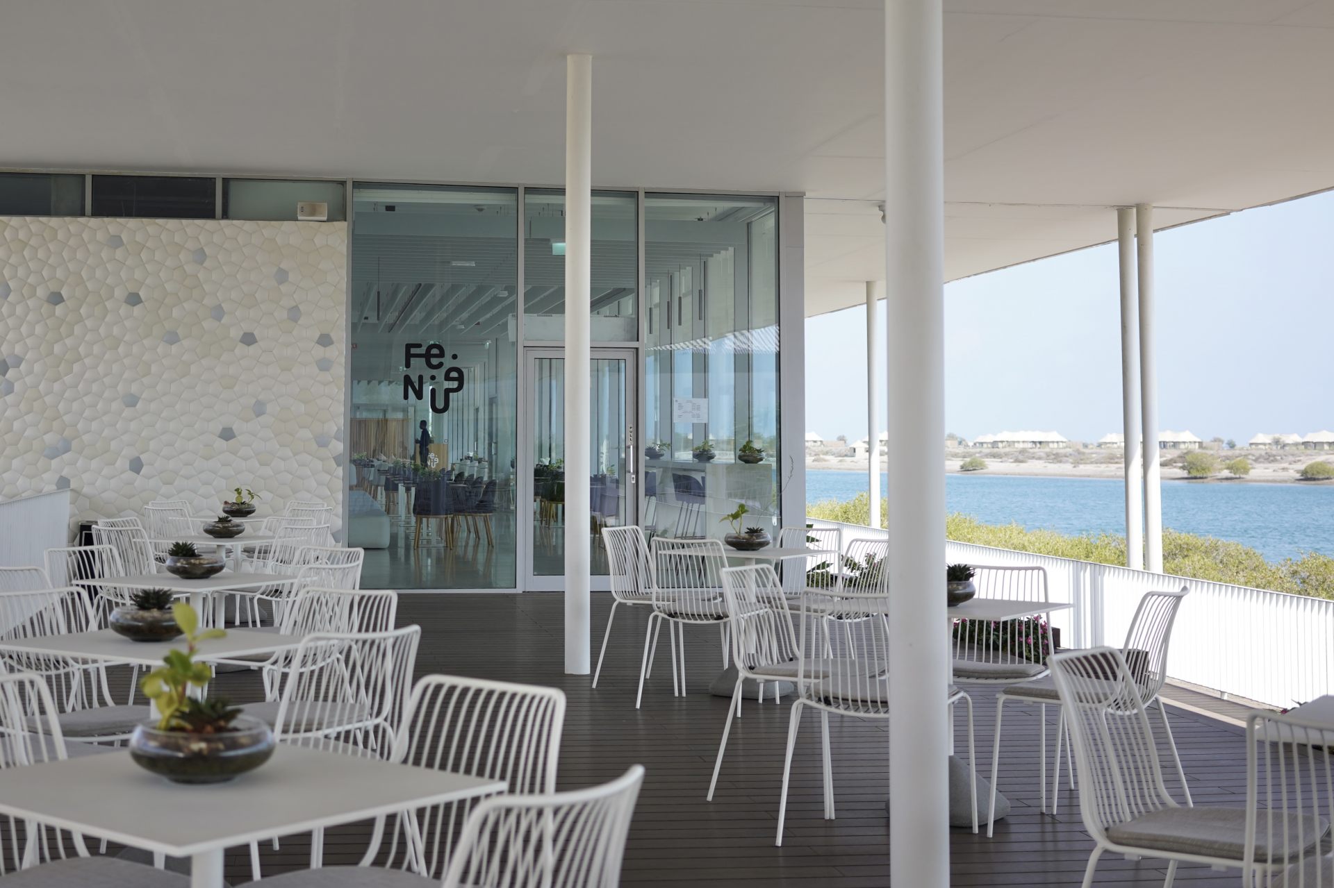 「フェン カフェ&レストラン(Fen cafe & Restaurant)」は、ドバイの隣の首長国シャルジャに6店舗構える人気レストラン。海岸沿いの町、カルバにある店舗では、美しいマングローブ林に癒やされながらおいしい食事を楽しむことができます。白を基調としたシンプルで洗練されたお店のテラス席からは、吹き抜ける潮風とともに透き通った青い海が一望でき、家族でゆったりとした休日を過ごすのに最適のお店です。