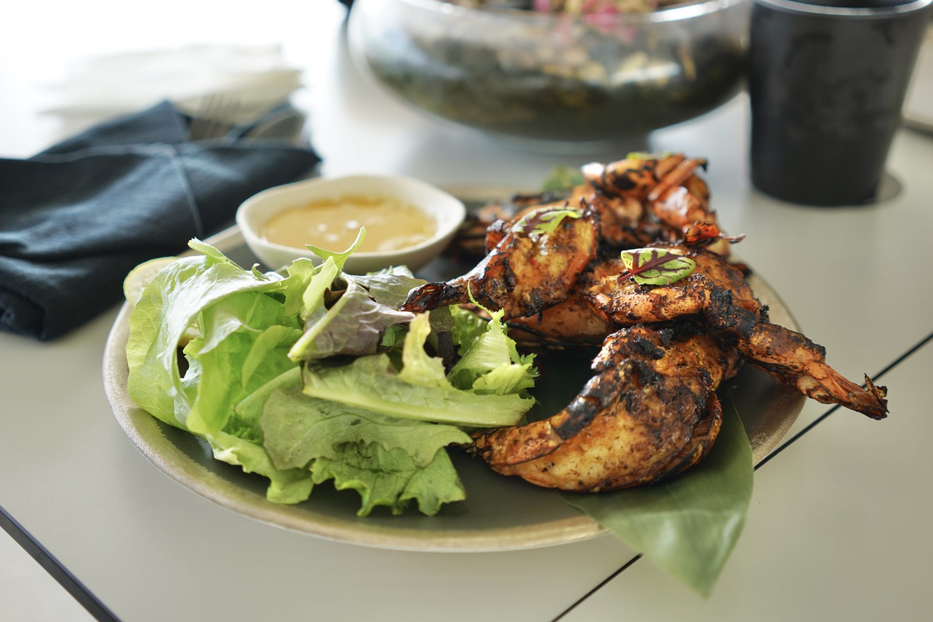「フェン カフェ&レストラン」では、地元のオマーン湾で採れる海老や、牡蠣、魚を使った料理もいただけます。特に、オマーン産の海老は甘く濃厚で忘れられない味わい。日本ではなかなかお目にかかれないので、UAEで食べるべき食材のひとつです。もし大人数で訪れるなら、シーフードプレートのオマーン産ロブスターをぜひ味わってみてください。そのほか、チキンカレーやカツサンド、海老の天ぷらなど日本人になじみのメニューもあるので、日本食が恋しくなったらチェックしてみてくださいね。