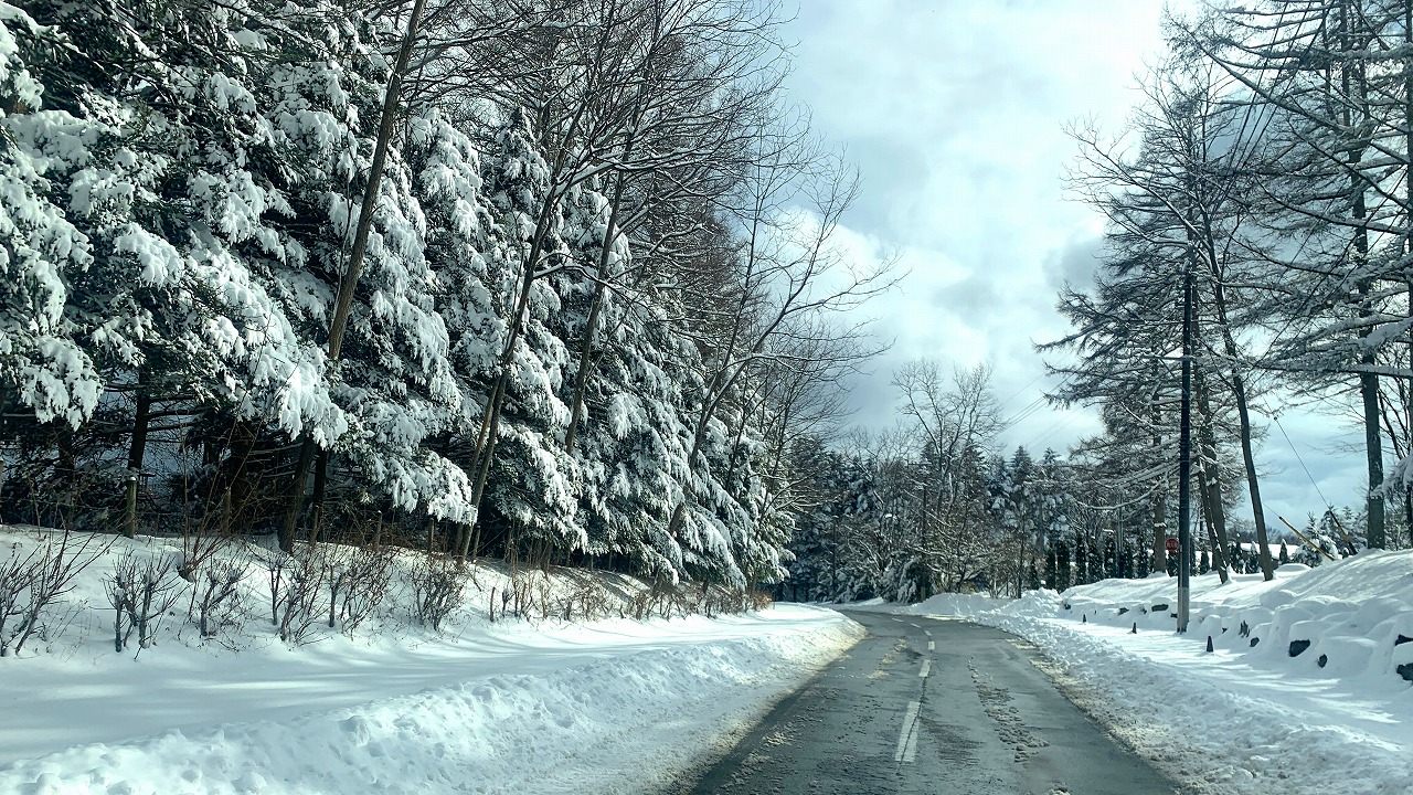 雪が残っている道も残っていない道も、朝夕は凍結する可能性があります。思わぬところでスリップしたりしますので、雪道の運転に慣れていない方は特にご注意ください。