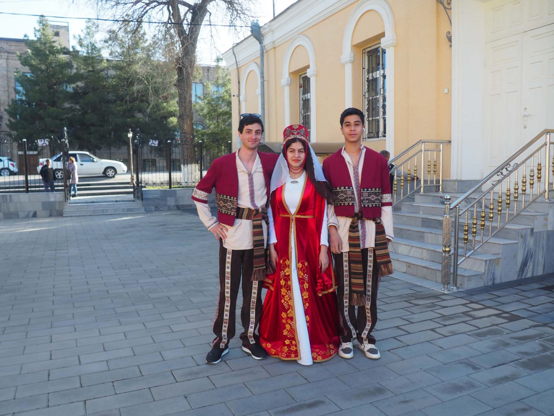 別の機会に見学した時は、なんと民族衣装姿のアルメニア人が! このときはナウルーズが近い時期だったのですが、近隣の街でのナウルーズイベントに出演予定の方々だったようです。貴重な姿を見せてもらい感激しました。