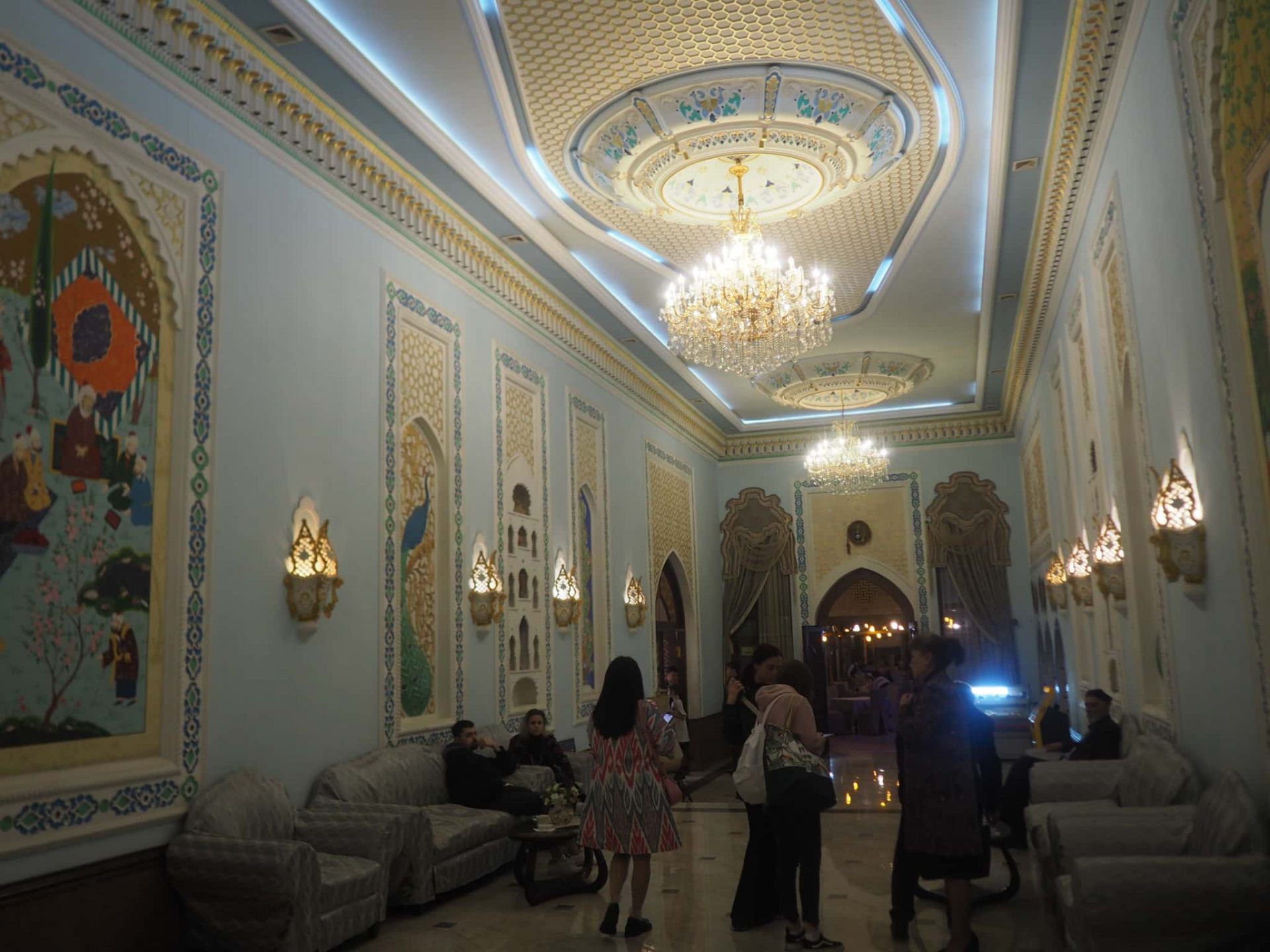 その理由は大ホールに入った瞬間分かることでしょう。このホールは100人以上のお客が悠々入ることができるほどのスペース。夜になると大爆音ウズベクポップスが流され、ゲストがダンスに興じます。人々は踊り好きなのに意外とダンスショーを見られる機会が少ないサマルカンドで、最も確実にダンスを見られる場所のはずです(笑)