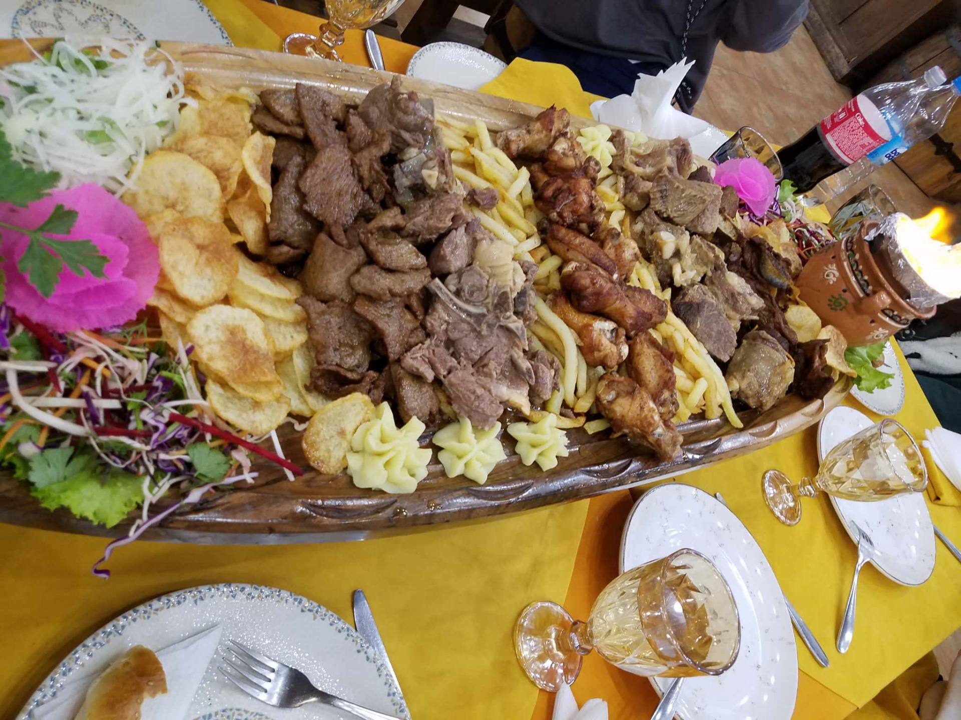 大人数で来たなら、ぜひ食べてみたいのが肉料理の大皿盛り合わせ。この肉料理だけでも人数や肉の種類によってあらゆるメニューがあります。10人用のメニューともなるとその迫力たるやかなりのもので、運ばれる瞬間歓声が上がるはずです。