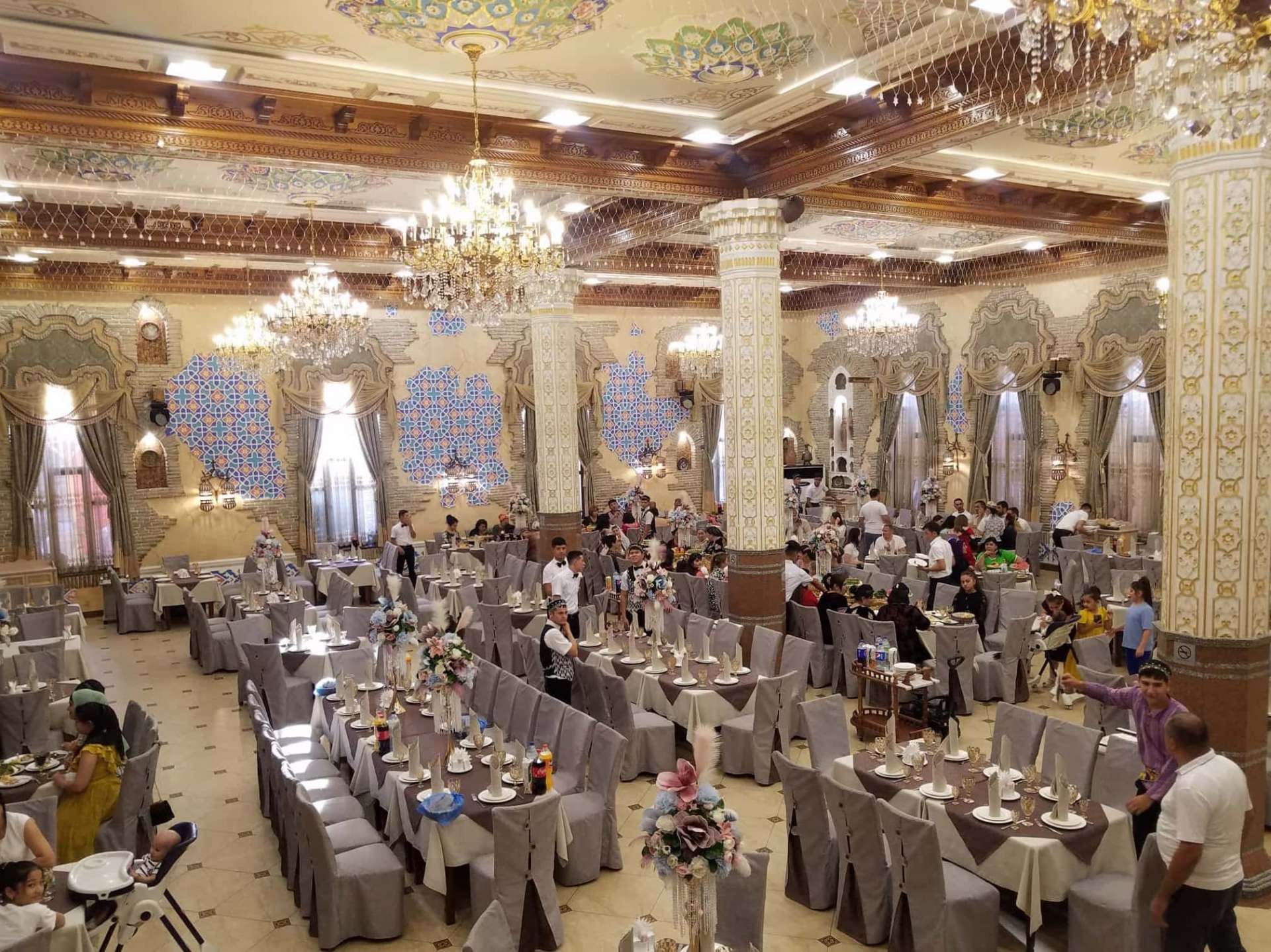 事あるごとに派手なパーティーを開くのが大好きなサマルカンドの人々。誰かの誕生日やイベントの打ち上げなどの際は、大規模な食事会を開いて祝うのはよくあること。サマルカンドにはよく使われる大規模なレストランがいくつもあり、夜な夜な爆音ウズベクポップスがたれ流されるなか、派手に着飾ったお客たちが思いおもいに豪華な料理やダンスを楽しんでいます。