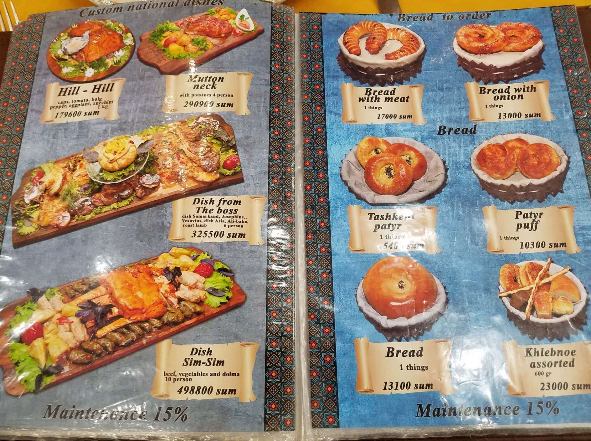 有名レストランだけあって、肝心の料理のお味もグッド。プロフやラグマンなどの定番ウズベク料理から、この店オリジナルメニューまで、多種多様な料理が揃い目移りするほどです。値段もお店の格から想像するほど高くありません。英語が通じる店員がいるので、迷ったらおすすめ料理を聞いてみましょう。