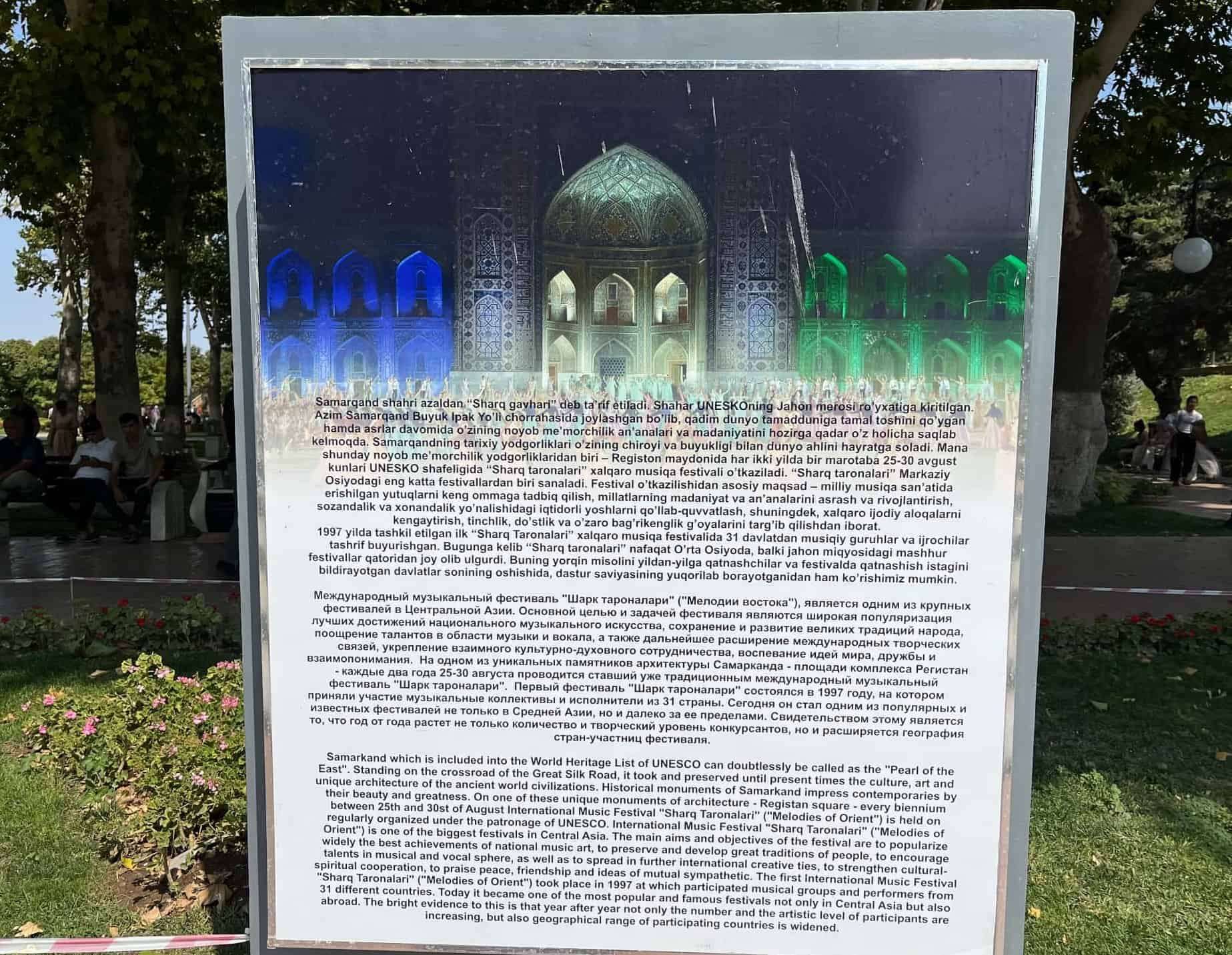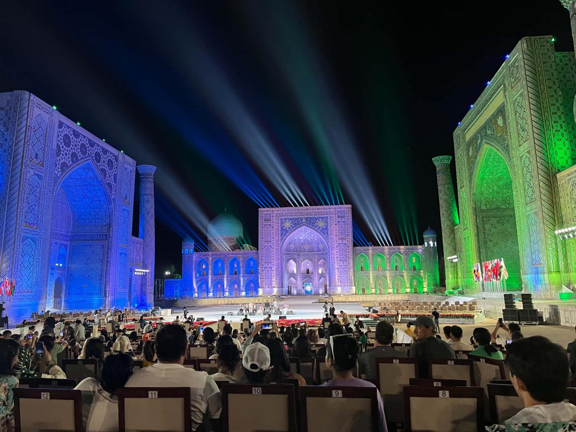 このイベントの魅力は、何と言っても世界各国から招待されたバラエティ豊かなアーティストたちのパフォーマンスが聞けること。しかも会場はあのレギスタン広場。コロナ禍を挟んで5年ぶりの開催となるこのイベントを、私や音楽好きのウズベキスタン人たちは心待ちにしていました。