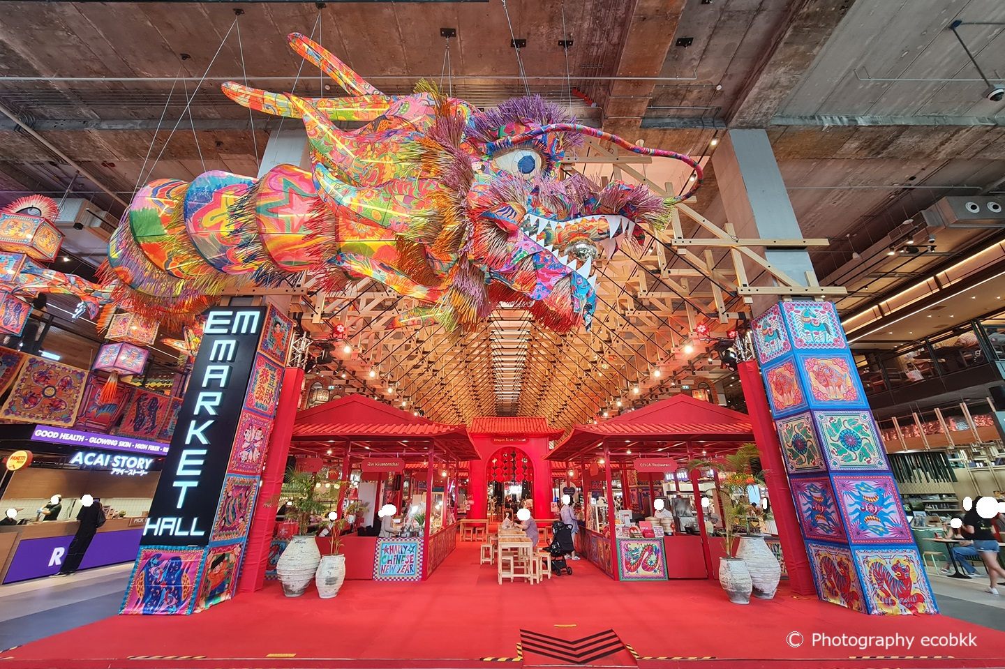 筆者は、12月中旬と1月中旬に日本へ急遽一時帰国していたため、12月中旬以降プロンポン駅周辺の様子を確認できていませんでしたが、2024年2月2日~19日には、エムスフィアのEM Market HallのG階には、Dragon Street Marketができ、訪問客のフォトスポットになっています。中央の赤い通路脇には、COCA等大変有名なお店が出店しています。春節後の変化も楽しみですね。