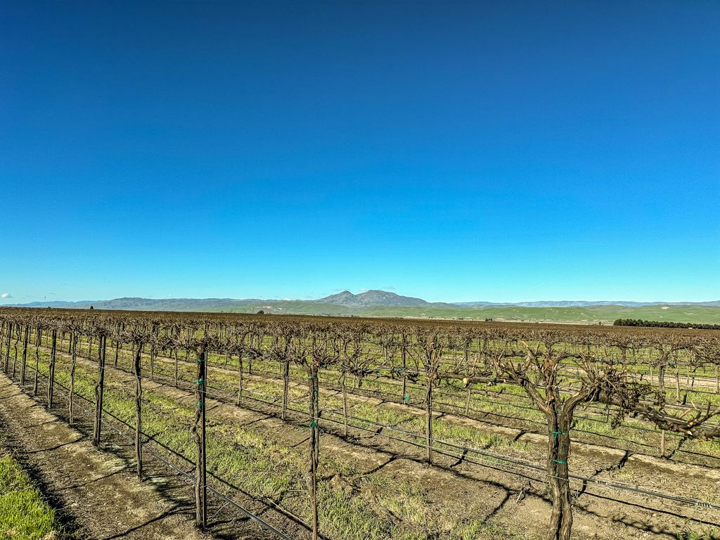 ワイナリーの西に広がるワイン畑。Pino Noir? 春に向けきれいに剪定されていました。