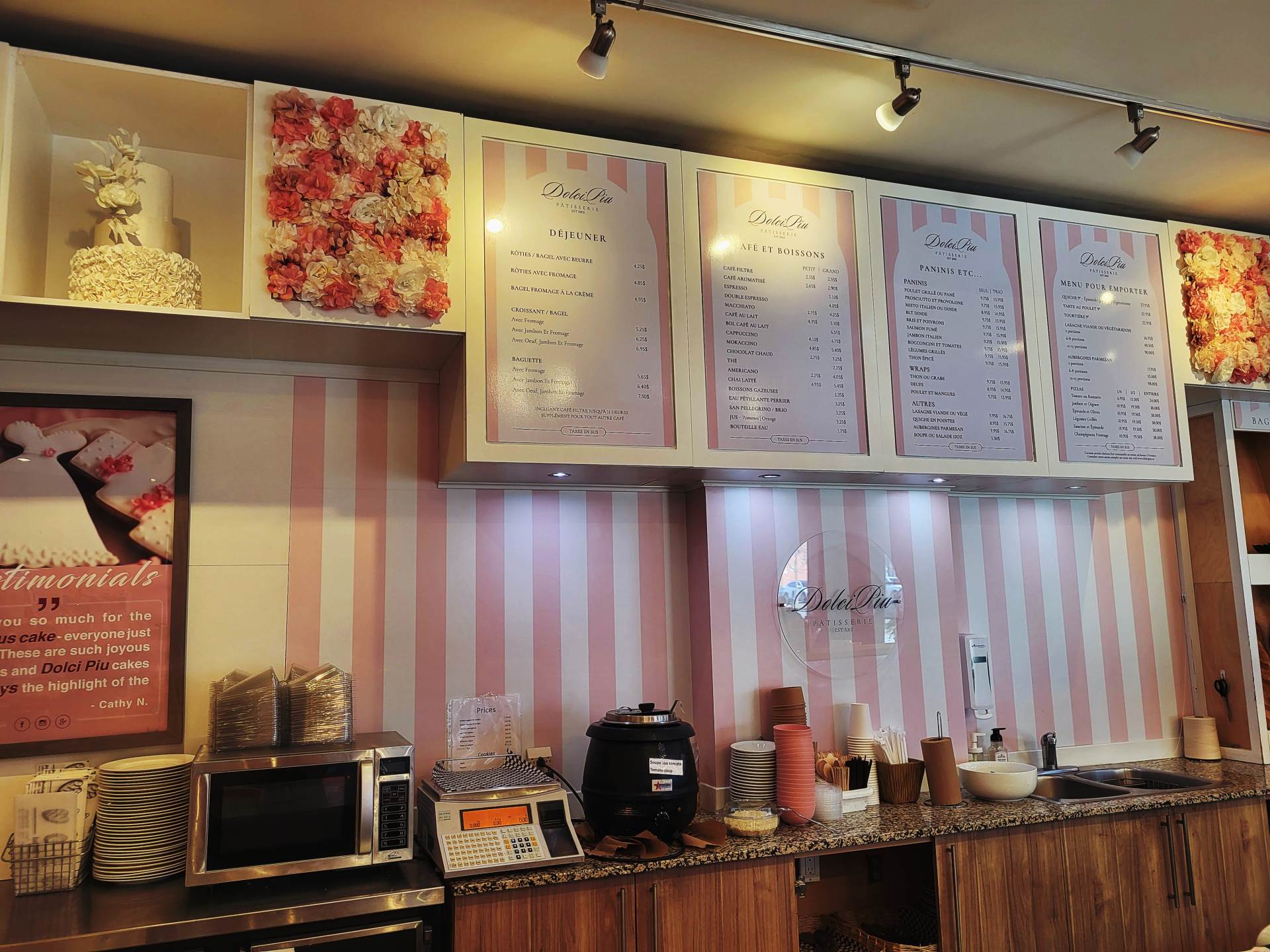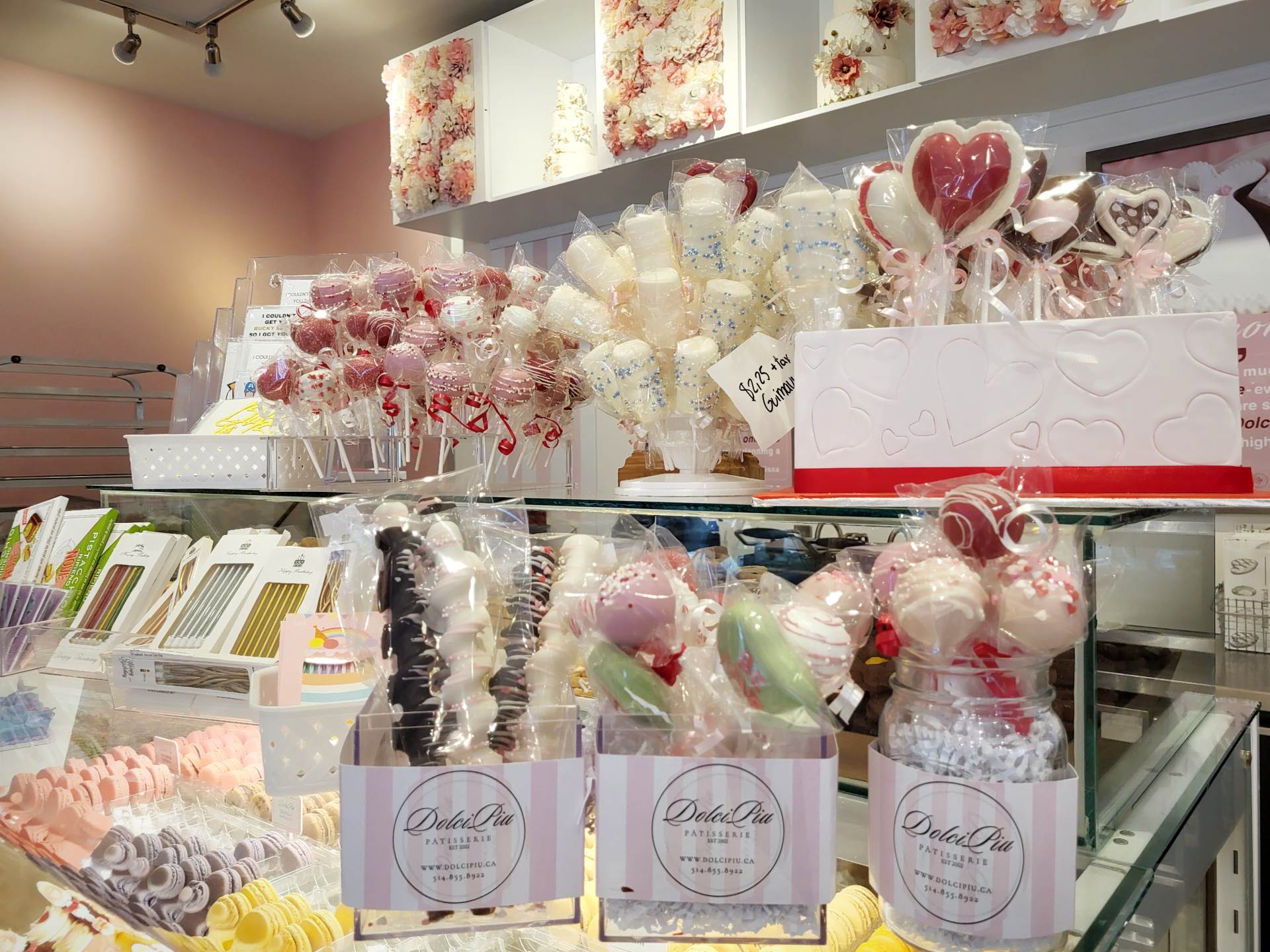 本日ご紹介するのは、地下鉄グリーンラインの終点「Côte-Vertu」駅から徒歩5分のところにある、かわいい内装、かわいいケーキやロリポップがたくさんあるイタリアンパティスリー「Dolci Piu(ドルチ・ピウ)」です。