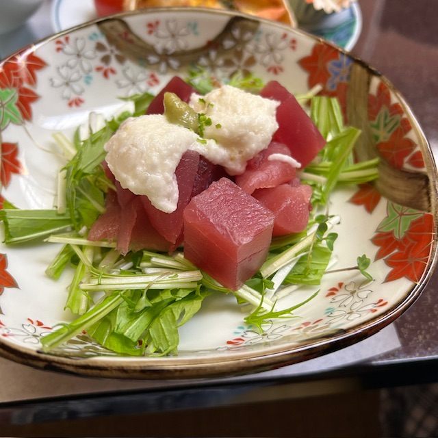 まぐろの山かけ風サラダ これなら、刺身とサラダが一緒に楽しめます。