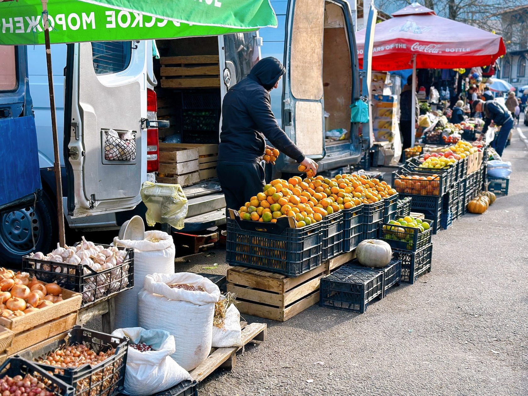 みかんばかりを売るお店、ネギや葉物ばかりを売るお店、はちみつや薬草のみのお店、肉を売る店、雑貨を売る店や野菜全般を売るお店など……。